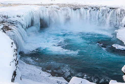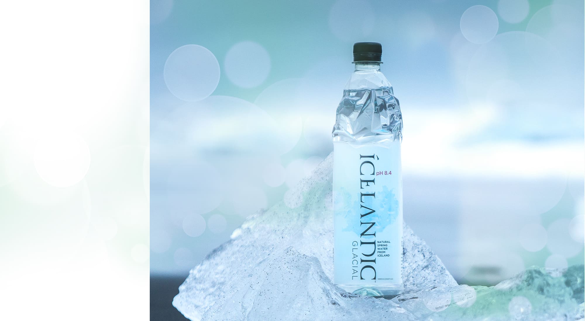 アイスランディック・グレーシャルが採水されているアイスランドのオルフス泉は世界最大の天然温泉の1つで、毎日90万立方メートル以上の水が海に溢れています。無人の手つかずの溶岩原で雨と雪が徐々にろ過されているので絶えず補充されます。